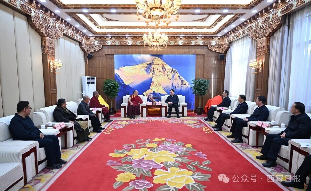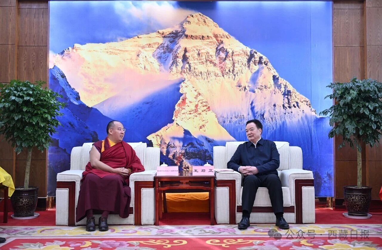 近日,自治區(qū)黨委書記王君正在日喀則市調(diào)研宗教工作。調(diào)研中,王君正會見了班禪額爾德尼·確吉杰布。記者 旦增西旦 攝