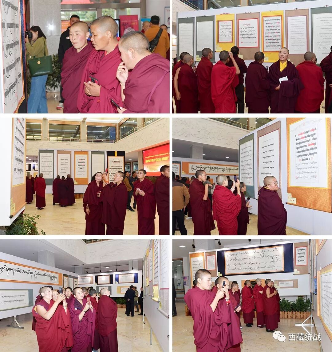 2019年9月28日,為喜迎中華人民共和國成立70周年,謳歌西藏民主改革60年取得輝煌成就,展現(xiàn)新時代我區(qū)寺廟僧尼新面貌新氣象,由區(qū)黨委統(tǒng)戰(zhàn)部、區(qū)宗教局主辦,中國佛教協(xié)會西藏分會、自治區(qū)“遵行四條標準 爭做先進僧尼”教育實踐活動領導小組辦公室承辦,西藏佛學院、西藏自治區(qū)圖書館協(xié)辦的慶祝新中國成立70周年暨“遵行四條標準 爭做先進僧尼”教育實踐活動書法展在拉薩舉行。